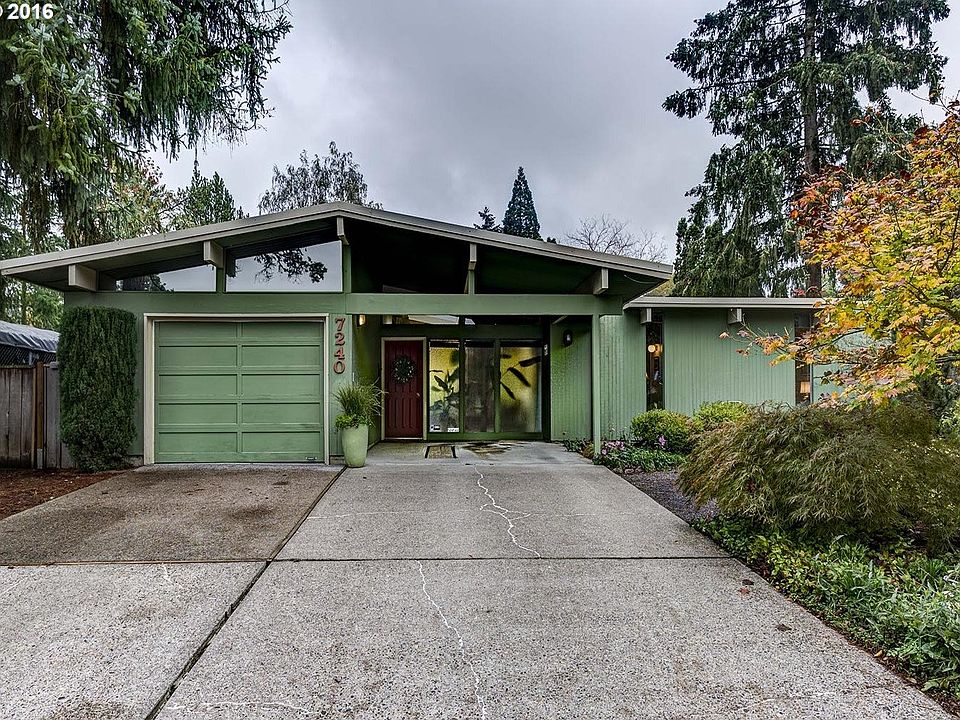 Open Nov 1st 11-1 Classic Eichler inspired Rummer built home. In floor heat fueled by gas. Most of the windows are dual pane, the roof is Dura-last. A classic, vaulted atrium with exposed aggregate floors and sky lights. Newer counter tops, a gas stove, pantry and built-in microwave in the kitchen. Completely private, fenced back yard with patio and fountain. Located in Bohmann Park on a quiet loop street.