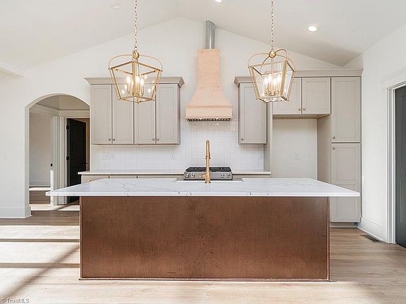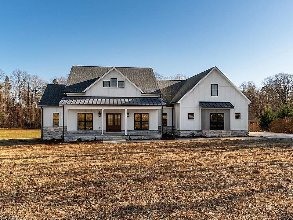 This modern farmhouse is charming and luxurious with its well-thought-out design and high-end features.The Front Porch provides a warm and welcoming appeal. The Grand Open Floor Plan is great for entertaining or family gatherings. The Kitchen is a standout feature with a Custom Hood, Kitchen Island, Quartz Countertops, and Brass Fixtures. The Breakfast Nook and Pantry are great additions in the kitchen space. The Owner Suite with Faux Beams and an Owners Bath featuring a Walk-in Closet adds a touch of luxury. The second bedroom with a Full Bath on the main floor adds convenience. Upstairs, the 2 Additional Guest Bedrooms/Bonus Room and a Full Bath provide flexibility for various needs, such as living space or a home office. The Covered Back Porch allows residents to enjoy the tranquility and natural surroundings. Only 5 minutes from Burlington or I40/85 highlights the convenient location of the property. This exquisite modern farmhouse offers a perfect blend of style and practicality.