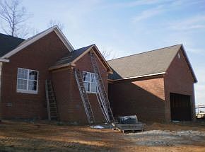 Partially completed new construction has vaulted ceiling in living room, master bedroom has large walk-in closet, master bath has double vanity and tub/shower combo. Attached double garage & covered porch.