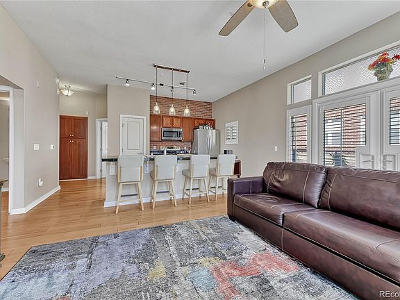 End unit at the Belmar Lofts with many upgrades. 2 bedrooms, 2 bathrooms, 2 reserved parking spot with an option to rent or purchase additional secured parking spots from the HOA. Upgrades include granite counter tops, stainless steel appliances, beautiful brick kitchen back splash, hardwood floors, newer paint & carpet, newer matching plantation shutters throughout, upgraded lighting fixtures, 9' ceilings, ceiling fans, lots of natural light & windows, balcony, & fire sprinkler system. All appliances stay including the washer & dryer. Secure building. HOA garage has 24 hour surveillance system. Great location next to Belmar Park near Wadsworth & Alameda. Close to shops, parks, hospitals, farmers market, and many other amenities.