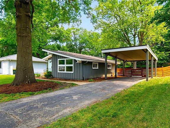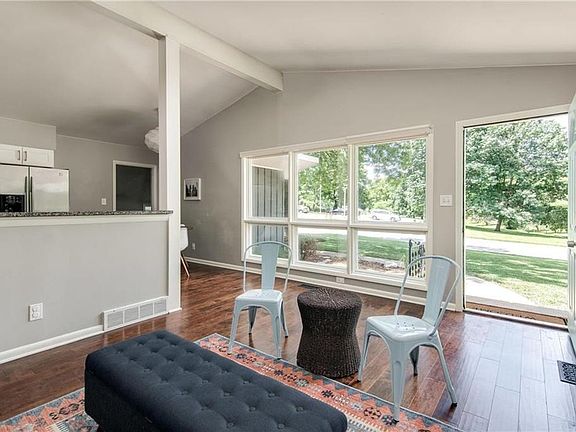Mid Century Modern with a full basement! Move in ready recently remodeled ranch is bigger than it looks. Vaulted ceilings stay true to the mid century vibe and open concept, with modern updates in kitchen and bathrooms. Huge picture windows let in lots of natural light. Large bonus room could serve as a 4th bedroom or a second living space. Master suite walks out to back patio. There is a park right across the street. Just minutes from downtown OP and highway access. New carpet in bedrooms.