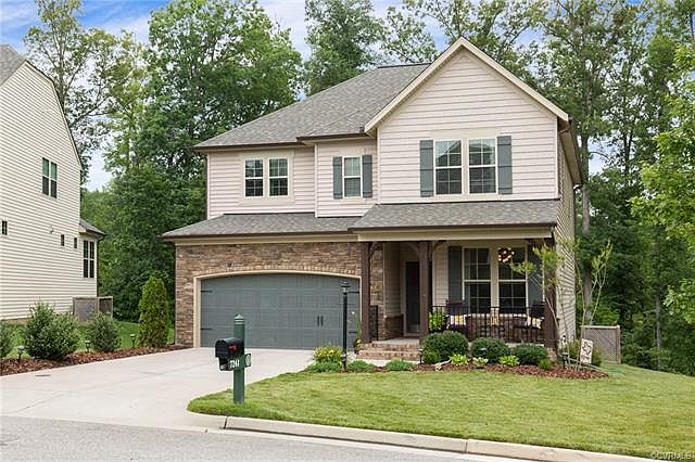 This home shows like a model in Magnolia Green with top schools, new aquatic center, golf course, community farmers market and more. Situated on an overisized lot and backs to woods for ultimate privacy. Full irrigation, oversized driveway for parking and fantastic covered front porch with stone/rustic column details. Entry foyer w/ espresso wood floors and crown molding, front office with large picture window, mill work on wall and designer lighting. Family room/kitchen and breakfast/dining room are all open and ready to entertain in! Corner fireplace with lovely mantel detail and wall of windows in the family room. The kitchen is stunning with large center island, Quartz, pendant lighting and recessed lights, large corner pantry, subway tile and gas cooking. Dining/breakfast room boast a wall of windows and sliding doors to rear deck. Upstairs is the kid rec room/sitting area or another office complete with Ship-Lap! Gorgeous master suite with designer lighting, trey ceiling with crown, WIC and spa-like bath with tiled shower and double sink vanities. 2 additional spacious bedrooms with large closets and a full bath with designer mill work details finish out the 2nd floor.