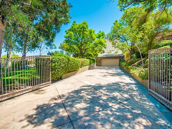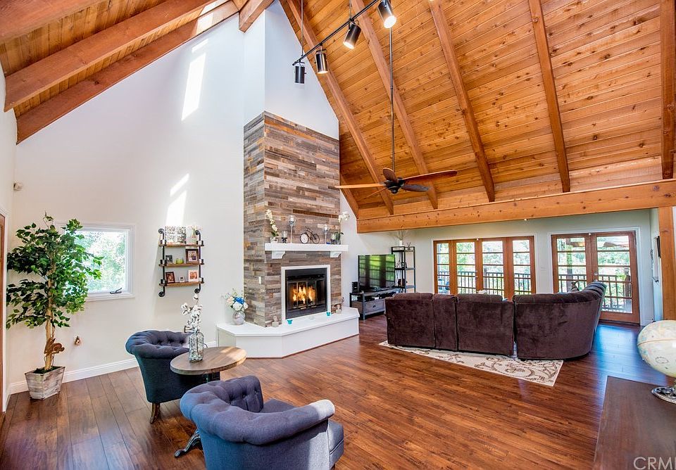 If you're looking for a quiet, private retreat home, you've hit the jackpot here!!. This home sits far back off the street, offering privacy and tranquility. Every aspect of the home has been remodeled and updated. Hardwood floors throughout the home and dramatic vaulted ceilings create a statement throughout the home, and the wrap-around porch, skylights, and multiple French doors allow for natural light and a feeling of openness rarely found in this area. The covered patio is multi-level, and overlooks a breathtaking view of Corona, allowing for multiple entertaining areas. The extensive lot is gorgeously kept up, with charming walkways, paved footpaths, and lighted trails leading to a lower lawn featuring a sitting area around a brick firepit. Inside the home you'll find a spacious, storage-filled laundry room, three bedrooms downstairs, and a master bedroom with a separate sitting room, walk-in closet, and ensuite bathroom upstairs. An extra bonus is the over sized garage that can park four cars, and a lot that has gated RV. Come see this home quickly before it's gone!
