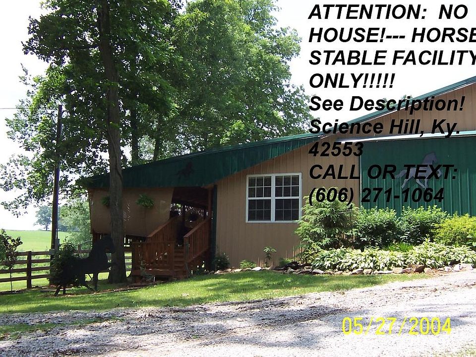 HORSE STABLES NOT A HOUSE AND RENT NEGOTIABLE FOR RENT/LEASE. NORTH HIGHWAY 27, SCIENCE HILL, KY. 42553 LOCATED ON 4-LANE HIGHWAY- 9 MILES NORTH OF SOMERSET, KY. - AND @ 60 MILES SOUTH OF LEXINGTON, KY. ALL UTILITIES INCLUDED WITH WHATEVER RENT AMOUNT WE AGREE ON Four 12x12 stalls with walk-out paddock; - Two 12x14 stalls; - One 24x14 stallion or brood mare stall; one 12x12 hay stall; one 12/12 stall WITH wheelbarrow, shovels, forks, lime wheelbarrow, etc. Stalls have individual water Front concrete screened in porch w/ crossties. - Back concrete screened porch w/ crossties also used as bathing area. Porches are enclosed during winter. Huge work area with 3 crossties/rubber mats/windows/concrete floor/stereo/seating/Lots of hanging hooks Cabinets for meds/supplies/shampoos, etc.-- Small frig. w/ freezer. Fans - Also, work area is fully enclosed for winter with kerosene blower for heat. ENTIRE STABLE FACILITY IS INSULATED 160 x 18 HALLWAY AND RIDING AREA -as well as property riding. Lots of beautiful huge shade trees on property. Have two fenced areas (small) both w/ water faucets. Rent negotiable according to number of horses. Our home is built inside the stable. We have 24/7 security on property. Someone is on the premises 24/7 to check on horses and water. Our location is awesome for someone selling horses on the internet. Airport is in Lexington about an hour away. We are centrally located to other states. I sold horses to Special Needs adults and children for 13 years. Families came from many states. We have HUGE parking area circle driveway Separate water/bath to facilitate parking for live-in horsetrailers. Also camper hookup on property. I am now retired. I miss the horses!! Would love to have someone who is in the business of selling pleasure horses but not a deal breaker. We have tractor and manure spreader. No living quarters. BY APPOINTMENT ONLY. Call (EST 10:00 a.m. to 6 p.m.................