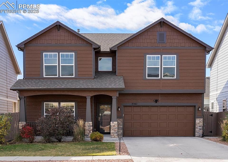 Welcome to this meticulously maintained 4-bedroom, 3-bath home nestled in a secluded neighborhood. This home features a comprehensive smart home package, including a Ring doorbell, Nest thermostat, and Nest security cameras. The open living space seamlessly flows into a spacious kitchen, complete with elegant granite countertops, new Samsung appliances, and tasteful crown molding—perfect for entertaining and everyday living. Upstairs, you'll find the oversized primary suite that offers a luxurious retreat with an attached 5-piece bath. Laundry room is conveniently located near the bedrooms. Large loft offers versatile potential. The fully finished garage boasts epoxy floors, insulation, drywall, and freshly painted walls. The backyard is a private oasis, featuring a large shed, fully landscaped front and back yards, and a stamped and stained concrete patio and walkway—ideal for outdoor gatherings. Located just minutes from main shopping centers, convenience stores, and a community park within walking distance, this home offers both comfort and convenience in a desirable setting. About 20 minutes to Peterson, 25 minutes to Schriever, and 25 minutes to the Airforce academy