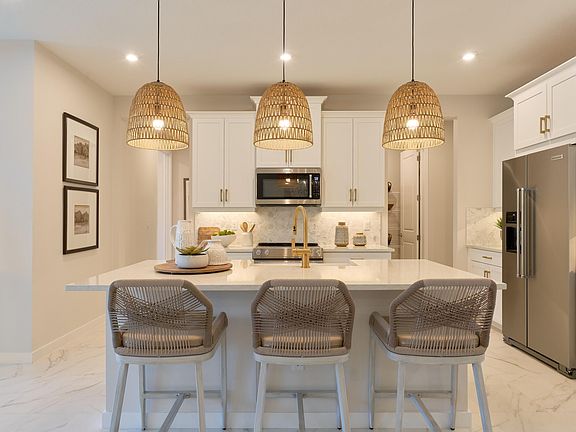 The Benton is a 2,846 sq. ft. 2-story home that offers 5 bedrooms, 3 baths and a 2-car garage. The first floor of this home features a welcoming foyer with a beautiful flex room that can be used as a game room, office or play room. The 5th bedroom located on the first floor can be used as a guest suite. The kitchen is open to the Great Room and dining room, and the covered lanai extends the living outdoors. The second floor features 3 secondary bedrooms that share a full bath with double sinks, along with the convenience of the laundry room. The owner's suite is a relaxing retreat with a private bath and a walk-in closet.