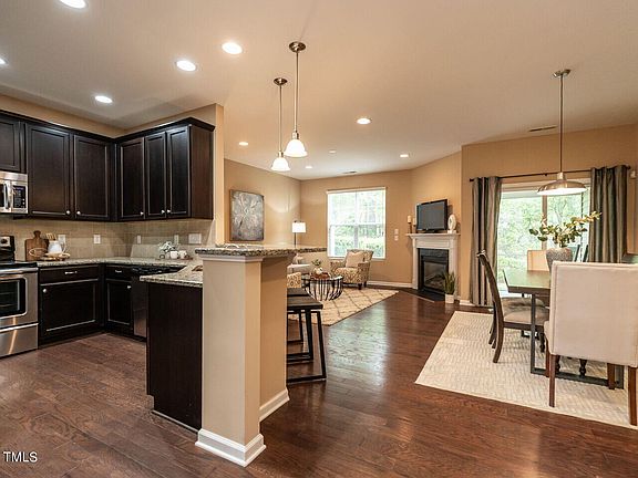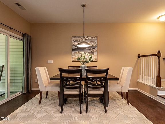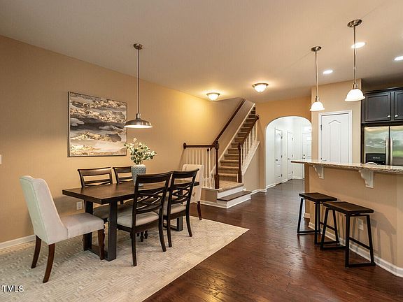 This move-in-ready townhome offers an open plan with nicely defined spaces and wood floors on the entire main level. 9-foot ceilings throughout and a second floor ''dual'' loft could have multi-purpose use with two distinct areas. Generous primary suite with nice architecture, featuring a window niche and tray ceiling. Screened porch, patio, and yard back to quaint agricultural land - ie. great privacy and natural backdrop. Seller is including refrigerator, washer, and dryer - all in great condition. Mulberry Park is a super friendly, primarily owner-occupied neighborhood, completely charming and pristinely maintained. The ideal location offers all the convenience of both North Raleigh and Brier Creek without all the traffic. Convenient to RDU & RTP. Very close to Page Farm strawberry patch and the future Swing Raquet & Paddle sports complex.
