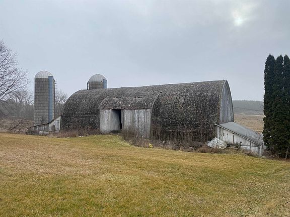 Country setting on a hard top road.  A large barn (dairy barn) with several aged outbuildings. Ideal for dairy, swine, equine, goats or sheep.  Second home on property with 1,014 square feet. Building Dimensions: Barn 88' x 36' , Barn 38' x 38', Pole Building 20' x 28', Pole Building 48' x 40', One Story Barn 36' x 28', Wooden Corn Crib 40' x 26'. The balance of the acreage is pasture with average fences.