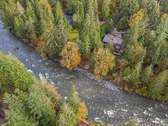 Extraordinary riverfront lodge on iconic Moon Valley Road. Prominently sited directly at the foot of Mt Si on 1.1 acres. One of the most incredible settings in the Pacific Northwest. Enjoy 185' of low bank North Fork Snoqualmie riverfront. High-impact mountain views are right at your doorstep. Impeccable $800k+ remodel. Ask for Special Features sheet. The highest level of quality & craftsmanship is evident. Enjoy river & mountain views throughout. The chef's kitchen is chic perfection. Sumptuous primary suite. Multiple office spaces. 4th room w/closet. Wrap around deck, riverside fire pit for entertaining. Ample RV/boat pkg. Beautifully secluded setting, just minutes to shops, dining, I90 & more. Prized schools. Pre-inspected. Welcome home!