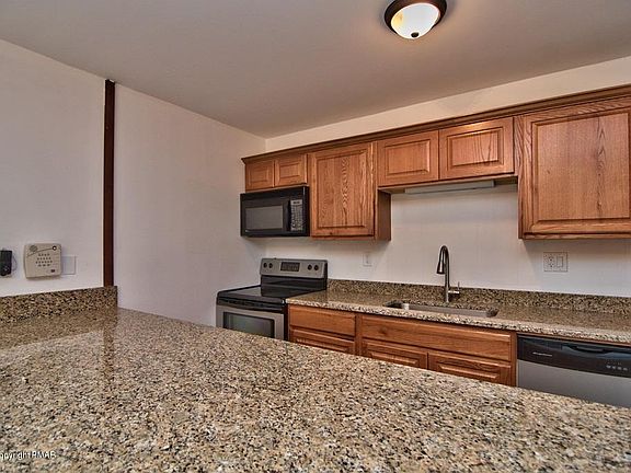 Freshly renovated 2 Bedroom, 2 Bath Townhome. Features Brand New kitchen Cabinets with Stainless Steel Appliances & Granite, Cathedral ceiling Living Room with Fireplace. First level Features Large Entry Way w/ Closet, Den/Office with huge Closet, storage galore! 2nd Floor Features Kitchen w/ Sliders to Newly Redone Deck, Bedroom w/ 2 closets, Large Fully Tiled Bath w/ tub & Laundry Area. Upper Level Features 2nd Bedroom w/ Private Bath & Balcony, as well as Loft. Don't Forget about the 1 Car Over sized Garage. Community dues of $175 a month Cover Snow Removal, Landscaping, Roof Repairs. If you are looking for worry free living, this might be THE ONE for you! Your mortgage will be less than rent! Close to Pocono Attractions, Sanofi Pasteur & Shopping!