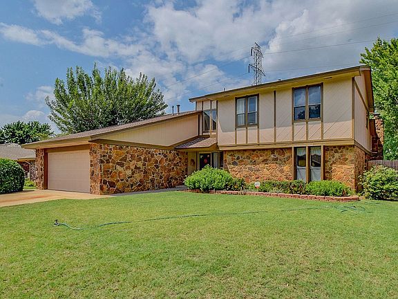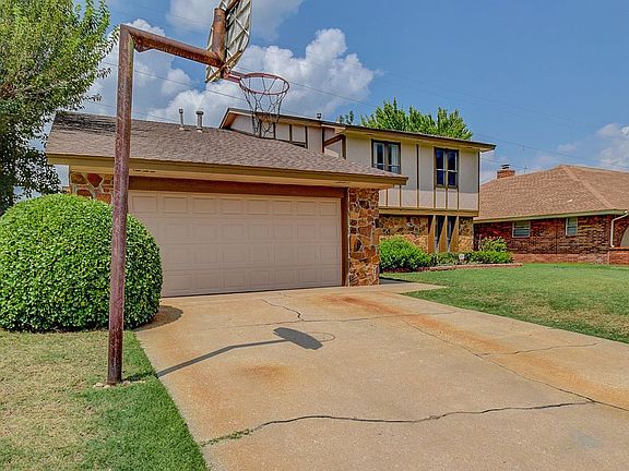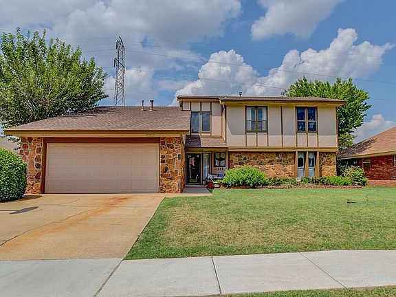 This spacious 4 bed, 2 1/2 bath home includes a bonus room w/ pool table and a crystal clear swimming pool! Near lake Hefner and a quick hop to the turnpike, the location can't be beat! A huge living room w/ cozy stone fireplace and built-in bookshelves expands upward with vaulted, beamed ceilings. Just off the side is a formal dining room w/ built-in sideboard for plenty of storage! The u-shaped kitchen has prep space galore including an eat at bar and an island. And if that isn't enough dining space, there is a breakfast room attached. The master suite is big enough for an office or sitting area and two separate vanities, jetted tub and private shower/toilet area make this quite the retreat. Upstairs you will find 3 more bedrooms and 2 additional full baths to give every member of your family their own place! In addition, there is terrific bonus room complete w/ pool table! The covered back patio is great for entertaining and complements the pool to create the perfect backyard oasis!