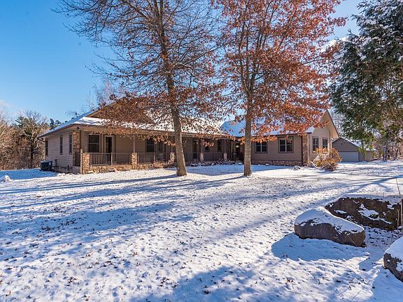 This exceptionally cared for country home is situated on over 5 acres of park-like grounds with 376’ on Stony Brook Creek and is nestled in the Heart of the Lakes Country only minutes from the Gull Lake Chain of Lakes, Championship Golf, Shopping and Fabulous Dining Options. This quality built 3BR-5BA home is perfect for those seeking privacy, convenience and a tranquil setting. Features include a large living room with a stone gas fireplace-cathedral tongue & groove ceilings-large custom windows-an open floorplan leading to a professionally designed dream kitchen with custom craftsman cabinetry-granite tile counter tops-a center island/breakfast bar and soon to be installed ALL NEW Whirlpool Stainless Steel appliances. There are 9’ ceilings throughout the main level, ALL NEW carpet installed on both levels, an array of patio doors & windows that welcome the natural light and capture the incredible views, a bright and airy sunroom with vaulted tongue & groove ceiling, large windows and a patio door that opens to the huge deck…great for entertaining! The spacious main level primary bedroom has cathedral ceilings-large windows and features a private ensuite with a luxurious Pearl jetted tub-separate shower and a walk-in closet. There are 2 additional main level bedrooms that each offer an outside entrance, beautiful flooring and one has a private bath. The lower level is finished and includes a 4th sleeping area with a bath along with a grand theatre/recreation room and a large family room. This property includes an attached finished 2 stall garage, a separate detached finished and heated 2+ stall garage PLUS an additional garage/barn offering endless possibilities for horses, animals, hobbies, storage or workshop.
