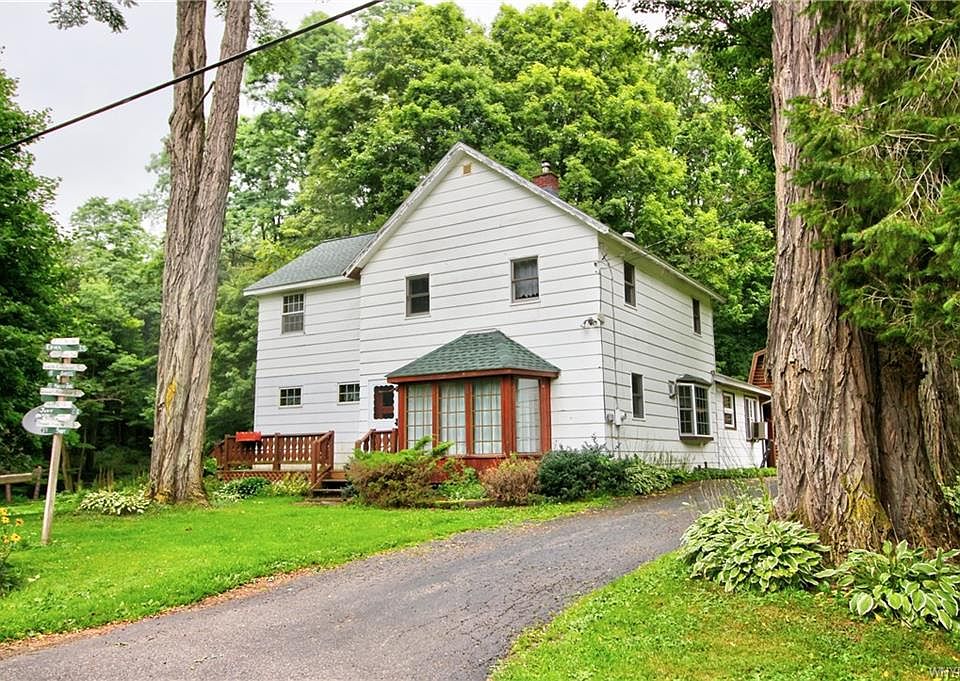 Hunters and outdoor lovers will love the setting and 25 acres, pond, with trails throughout, and this owner will look at offers. On a country road, literally 5 minutes from Ellicottville yet quiet, with a large farmhouse that can accommodate a crowd easily with a 2 story 800 sq ft addition, huge kitchen w island and cabinets galore, propane "wood-stove", 1st floor bath, laundry, and master bedroom, and covered wrap around deck overlooking the yard and pond! A 2 story barn built in 1995 adds to potential use along with an older horse barn and shed. A new roof was put on in 2018 along with wiring in the garage, and newer windows - all located an easy 5 min ride from Ellicottville! Tax record square footage does not include 800 sf two story addition. Need to stay connected? Cable now here!
