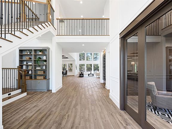 Welcome to this stunning custom home on 1.5 acres in the exclusive gated section of HME. Thoughtfully designed with both elegance and comfort in mind, this home features a dramatic wall of windows that flood the interior with natural light. Inside, you’ll find rich white oak cabinetry, sleek tile flooring, marble countertops, and striking floating stairs. The chef’s kitchen is equipped with Thermador appliances, a custom vent hood, pot filler, and a spacious walk-in pantry. Custom features like a designer wine rack, built-ins, high-end lighting, and upgraded fixtures are found throughout. The primary suite boasts a custom walk-in closet designed for optimal function and style. Enjoy indoor-outdoor living with large sliding doors that open to your private outdoor space. This home is a perfect blend of craftsmanship, thoughtful design, and livable luxury. Estimated completion is August 2025. Don’t miss your chance to own this serene, sophisticated masterpiece.