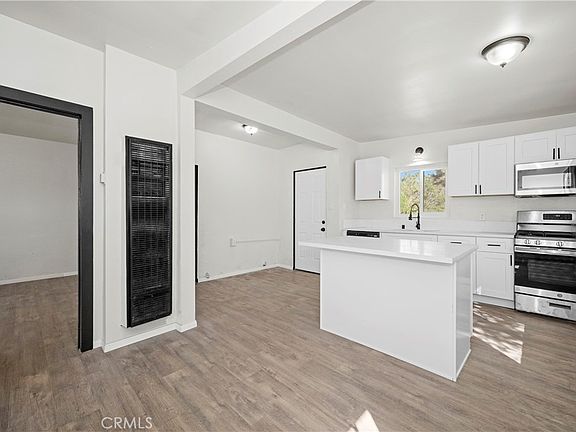 What an amazing to own such a large flat usable piece of land located so closely to higher density and commercial properties with three paved streets. With so much raw value in the land one might assume that the house needs work but quite the opposite! The home has fresh paint and flooring throughout and is complete with a kitchen featuring shaker cabinets, stainless fixtures, and quartz counters. There are two bedrooms and one bathroom and a rear door that leads out to a large concrete area and a lovely area surrounded by natural Joshua trees! This is a great opportunity for somebody looking for an affordable house in an up and coming area so act quickly!