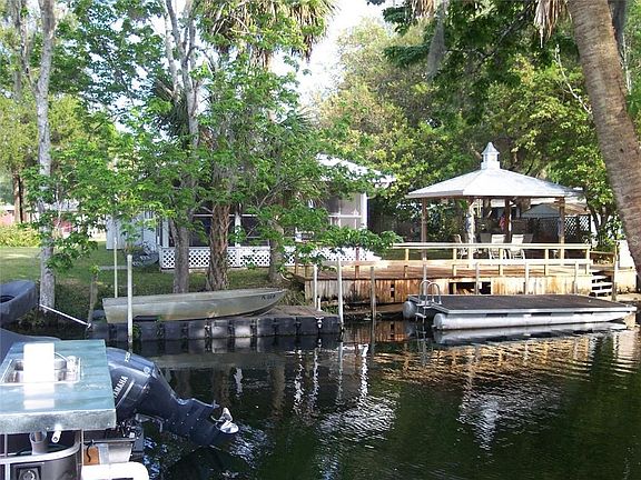 RARE FIND!! WEEKI WACHEE WATERFRONT FRESHWATER CANAL HOME ON TWO LOTS!! FEATURING 2 BEDROOMS, 2 BATHS, OPEN LIVING, KITCHEN, AND DINING AREAS, plus a 10x22 screened porch to watch the manatees and jumping mullet. New AC and Air Handler in 2019, Metal Roof in 2014, Plumbing replaced with PVC in 2019, New HWH in 2019, Floating Drive-On Dock for up to 22' boat, All Appliances INCLUDED, New higher toilets, Double Insulated lifetime windows. Outside covered pavilion with metal roof and pavers, wood decking on water side, wood dock with steps for easy access. Second lot includes a 12 x 24 workshop shed with add-on 8 x 16 additional storage extension, a canal fed irrigation pump, also included is an outside swing for relaxing. This home is being sold mostly furnished, with only a few exclusions (MBR mattress and box springs, LR TV and cabinet stand, and misc. personal items) There is easy Gulf Access from this home's dock to John's Canal that leads into the Weeki Wachee River around Hospital Hole. This home is NOT a true manufactured home, and only has the MH frame below it. The rest has all been replaced to make a beautiful waterfront vacation home both inside and out.