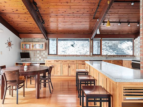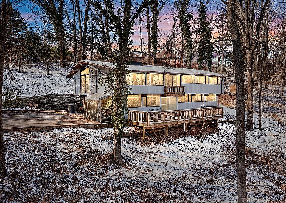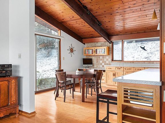 Experience the tranquility of this stunning mid century modern home nestled in 2 wooded acres. A unique contemporary, this property features extensive millwork, mahogany moldings, and vaulted redwood ceilings with exposed oak beams, as well as abundant windows throughout allowing for plentiful natural light and serene views. The kitchen boasts knotted pine cabinets, stainless steel appliances, corian countertops, and a large island that doubles as a breakfast bar. An exposed brick chimney and wood stove accent the living area, and you will additionally find three bedrooms on the main level and two full baths, one adjoining the master bedroom. The lower level has a spacious family room with a second wood-burning fireplace, as well as two bedrooms, one full bath and a sizable office. A laundry / storage room leads outside to the greenhouse and adjacent driveway with a stone walkway leading to the front door and with steps continuing to an additional parking area. At the bottom of the driveway, a detached garage represents endless possibilities as a workshop, rec room or finished as an office or studio. Behind the house, an expansive deck grants panoramic views of the lightly forested landscape. Enjoy the serenity afforded by rural beauty, and the accessibility of northeast Fauquier County. Adjacent lot is included in this sale 7905-52-1411. Parking in the paved lot on the main road just passed the driveway and walk down to the front door or driveway parking and take the path up to front door.