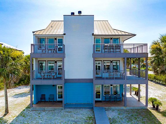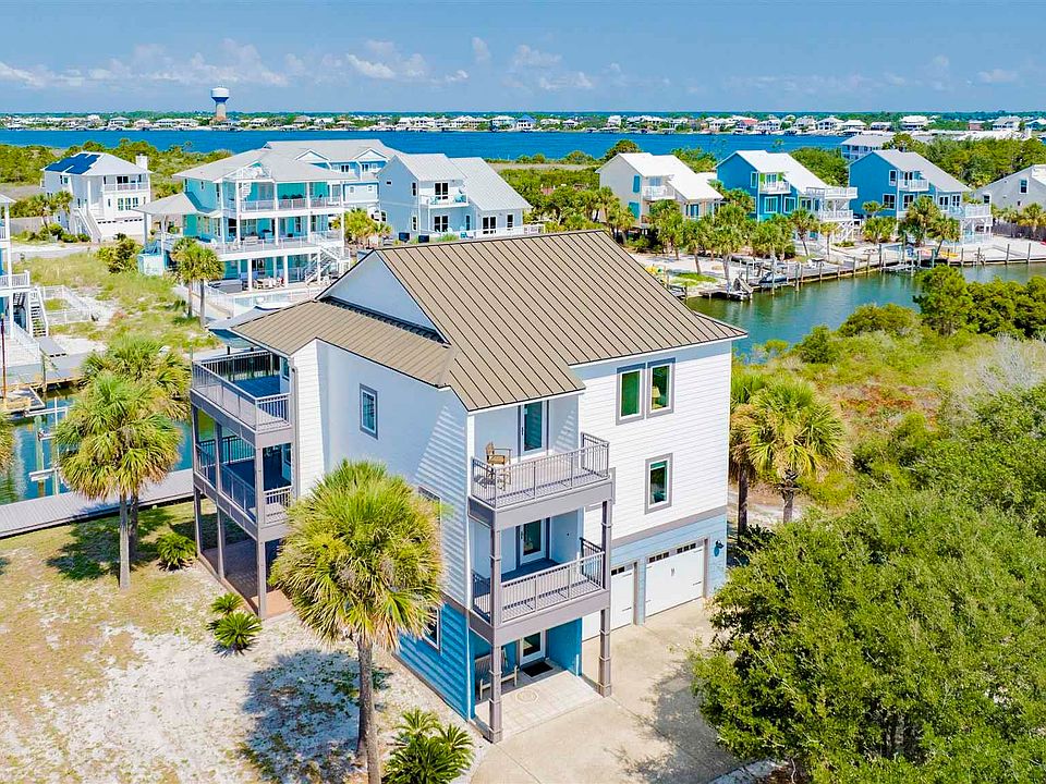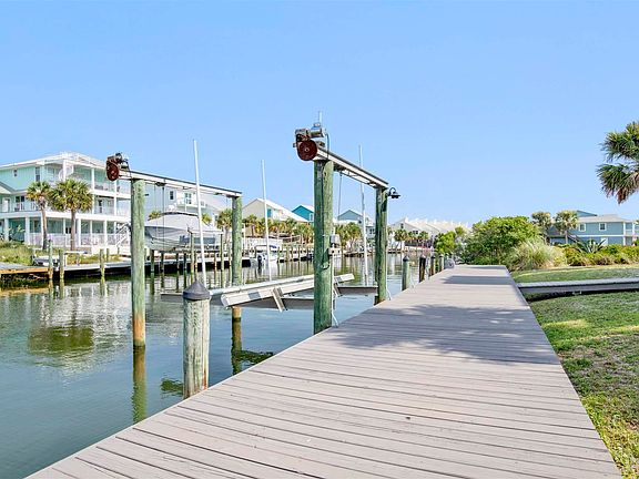 VACATION OR STAY-CATION? INVESTMENT NOW, RETIREMENT LATER OR PERMANENT HOME? Don't just dream about a summer paradise, make it a reality! Listen to the waves wash in and stroll the shimmering white sands of the beach. This fabulous canal front home in the heart of Perdido Key has beautiful views of the cerulean waters of the Gulf of Mexico and Ole River from the many decks and windows. The simply irresistible boating and fishing waters allow easy access to the Intracoastal Waterway and the Gulf of Mexico through either Pensacola pass or Alabama pass. The home was built sturdy with a metal roof and lots of Pella windows and doors that flood the home with natural light. The entire interior and exterior of the home received fresh paint in 2022. The first floor features a huge bedroom with two twin/full bunk beds, a dining area, two closets, a full bath, and a separate walk in closet that's perfect for storing boating and fishing equipment. The open floor plan of the second floor features a large kitchen, living and dining area with a fireplace, a bedroom, full bath, and laundry closet. The kitchen was recently remodeled with new cabinetry, appliances, quartz countertops and luxury vinyl plank flooring. The master bedroom and bath, two additional bedrooms, and another full bath comprise the third floor. The master suite features a sitting area, fireplace, large walk-in closet and two decks for enjoying the breeze, sunshine, and water views. The en suite bath has a jetted soaking tub with a view of the fireplace, a double vanity, and a separate shower. The architect designed the home with the addition of a future elevator in mind. The home is wired for a security system and has surround sound in the living area and master bedroom. A two car garage and circular driveway make parking easy. Palm trees and live oak trees enhance the exterior of the home. You have to see it to appreciate everything this home has to offer. Call today for your private showing!