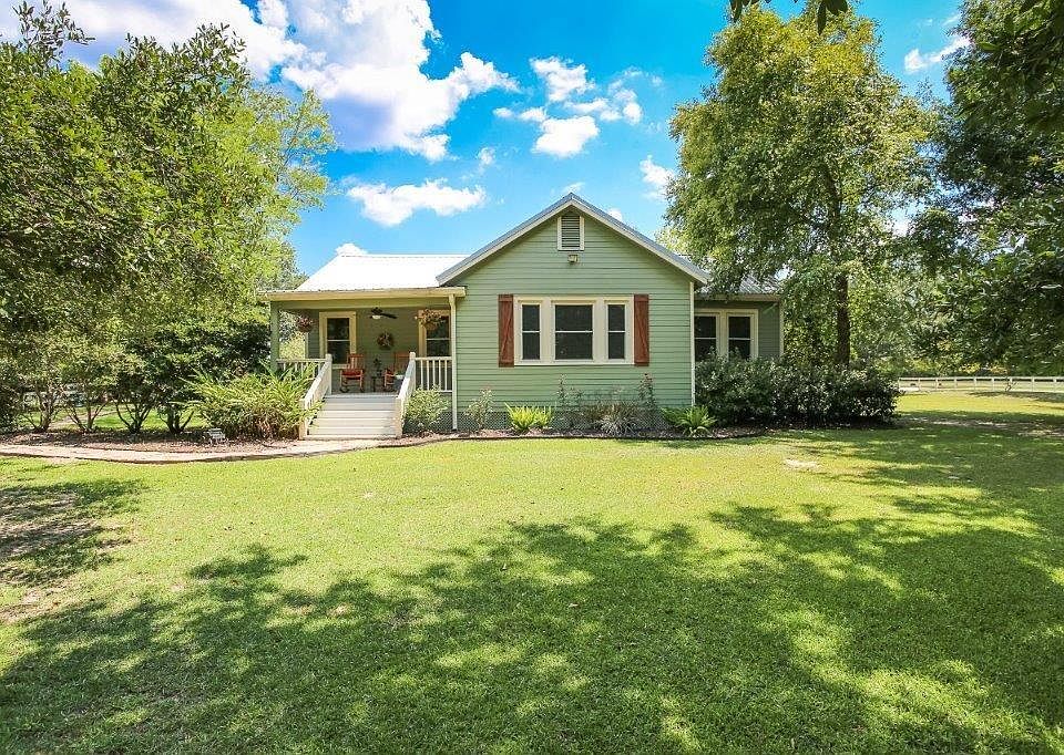 Every detail was considered in the 2017 renovation of this 1930's home. From the solid wood floors, to the custom cabinets, pecky cypress accent walls & 16kw Generator, this home has it all! Original wood trim, solid wood doors, glass door knobs & leaded glass show the truly unique character of this home. The kitchen features a Viking stove, granite counter tops & custom wood cabinets. Each bedroom has it's own full bath & large office could easily convert to a 4th bedroom. The Sunroom is the perfect space for entertaining with it's wall to wall windows & brick floors. The outdoor kitchen is strategically placed next to a huge oak tree & fire pit area. There is a large workshop & separate storage shed. Located minutes from I-10, this place is a hidden gem. This beautiful home sits on over 9 acres lined with mature trees & stocked pond. If country living is what you're looking for, look no further. You can't help but fall in love with the character & immaculate detail of this property!