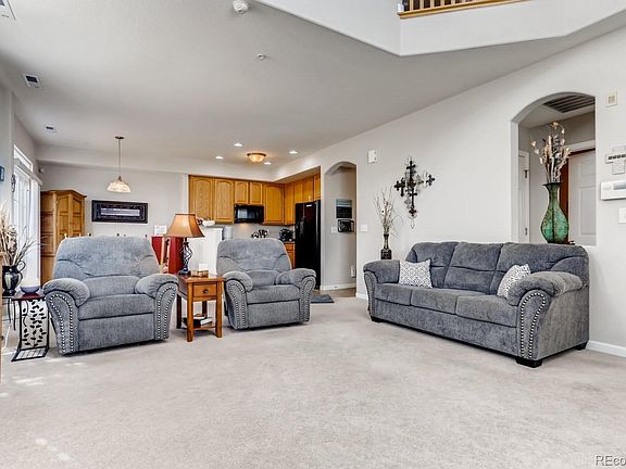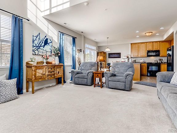 Location! Location! Location! This well kept and lovely townhome is in the highly sought after Serenity Ridge Community. This home is an end unit and features an open floor plan from the kitchen, eat-in dining area to living room. The living room boasts high ceilings with large windows allowing tons of bright light into the space! Cozy up in front of the fire place in the spacious living room. All appliances included in the kitchen which has plenty of space to cook and entertain. Next to the kitchen features a large pantry and another large storage closet. Upstairs you'll find your master bedroom and bath with a large walk-in closet! Across the hall, you'll find a second bedroom which can also be used as an office, another full bath and laundry. There is a large 2 car garage attached, with extra space for storage. There is a great maintenance free outdoor space off the patio that is perfect for relaxing and entertaining. Stress free becasue it is maintained by the HOA. Cherry Creek School district. Easy access to to E470, Southlands mall for shopping and restaurants. Come quick as this home will not stay on the market long!