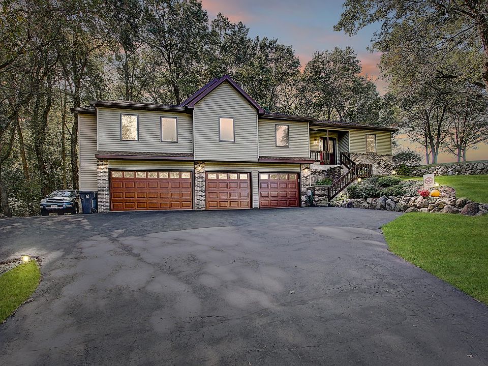 Wooded Privacy! If you were dreaming of a 4 bdrm home w/4 car garage nestled on almost 2 acres of wooded land in the Waunakee School District, you just found it! Walk in & notice the high cathedral clg in the spacious great rm w/flr-to-clg frplc that opens to a granite & SS kitchen w/hrdwd flrs! 4 bdrms on the main level + an office (could be 5th bdrm) w/vaulted clg & 2 skylights! Exposed L/L offers wonderful sunlit fmly rm w/farmhouse chic wet bar, sliding barn door & gas stove! Enjoy the outdoors from the deck w/gazebo & take in nature & the stars around the fire pit! A Rural Paradise! VRP $449,900-$469,900