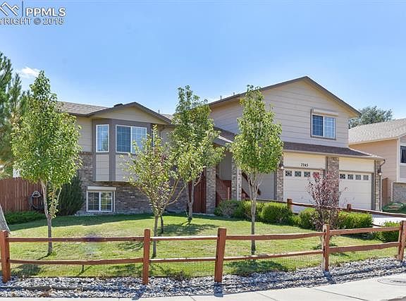 Great family home on a corner lot in the desirable Glen at Widefield neighborhood. The main level has a large living room with a bay window, separate dining room and a spacious kitchen with stainless steel appliances and eat-in area. A few steps down is the family room with a cozy gas fireplace and walks out to the backyard. The upper level features the master suite with a five piece bath as well as two additional bedrooms and another full bath. The fully finished basement has two more bedrooms, a full bath and another room that works great for a craft room/media room/2nd family room. The backyard has a large patio area that is partially covered as well as and outdoor BBQ/bar area to enjoy those Colorado evenings. The backyard also has two storage sheds and a parking area, just needs a gate put in. close to shopping, schools, and restaurants!