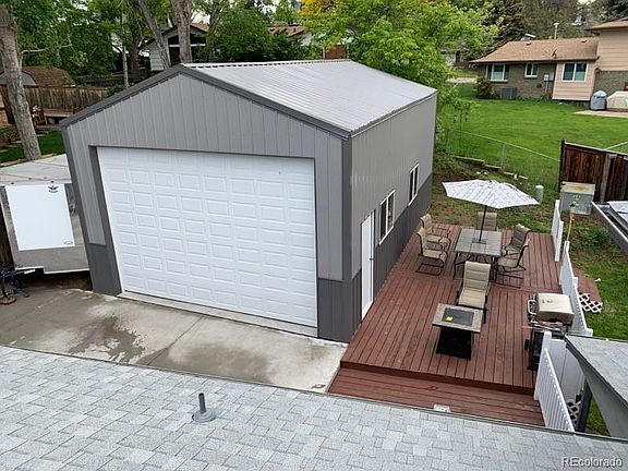 WOW! Fantastic Arvada tri-level with over 2000 finished sqft, RV parking, and a detached 4-car garage with 11 foot door and car lift! Perfect for a home mechanic, carpenter, and so much more! Light and bright interior with large living room, and dining room adjacent to the kitchen - great for formal entertaining! Plentiful cabinets and granite countertops, tile backsplash, and sunny eating space overlooking the backyard! Lower level family room with cozy fireplace featuring brick hearth and built-in shelves! Convenient powder bath/laundry room combo off of the family room! Upstairs is a master suite with an updated bath, and two secondary bedrooms share an updated full bath! Finished basement with large rec room - great for kids' play area or home office! Unbelievable backyard with a large covered patio and a huge deck that extends to the detached garage! Fully fenced for kids and pets to play! RV parking too! Walk to elementary and middle schools, and tons of shopping and restaurants are just minutes away! This home has it all!