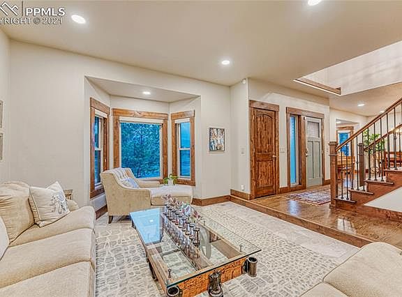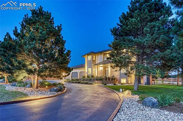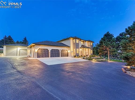 RARE OPPORTUNITY! Impeccably maintained, 4BD;4BA;9CAR home w/luxury finishes, Pikes Peak views, finished basement & detached 44 x 36 RV garage ON AN ACRE in the middle of northern Colo Spgs! This home in the highly desirable Academy School District #20 offers 3,998 sq ft & is professionally landscaped. High-end details include rich knotty alder doors & trim, gorgeous wood floors, custom tile work, upgraded light fixtures, 9 ceilings on main, beautiful open staircase & outdoor fire pitkitchen refrigerator & hot tub included! The eat-in kitchen has a gas range, quartz countertops, tile backsplash, pantry, bay of windows, breakfast bar & message center. The adjacent great room boasts a gas fireplace, custom tile surround, custom-built cabinetry & walk-out to a 26x16 deck. The formal dining & living rooms feature a bay of windows w/stunning Pikes Peak views. The main level laundry offers luxury vinyl flooring, cabinetry & garage access. Upstairs are three of the four bedrooms, including a spacious primary bedroom retreat w/Pikes Peak views, hardwood floors, ceiling fan & upgraded fixtures. The adjoining spa-like bath has a stand-alone tub, zero-entry shower, custom tile work, upgraded fixtures, custom cabinetry & walk-in closet w/window. One of the additional upstairs bedrooms offers an incredible Pikes Peak view. The other adjoins a full bath featuring wood-look tile floor, quartz countertop & upgraded lighting. Both bedrooms also have hardwood floors, ceiling fans & walk-in closets. The basement boasts a family room w gas fireplace, surround sound & wet bar and game/rec room w/above-grade windows & Pikes Peak view. Rounding out the basement is a home office, bedroom w/walk-in closet & ceiling fan & a bath w/his & hers vanities. The finished, detached RV garage has both a 13 and a 10 door, ceiling fans, heat & 220-volt service. Its convenient location is just minutes from I-25 & Powers Blvd & offers convenient access to shopping, dining & entertainment.