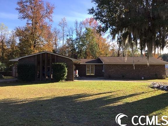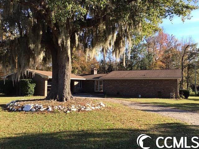NEW ROOF HAS JUST BEEN INSTALLED ! On This Unique Property !! Looking for Country Property? Yet Close to Town! Approximately 30 Minutes to Myrtle Beach & the Grand Strand! Lovely Setting with Large Live Oak & Magnolia Trees in Yard! Beautiful Mature Azaleas Blooming in the Spring ! All Brick Ranch Home - 3 Bedrooms- 2 1/2 Baths. Large Primary Suite with Sitting Area - Built-In Bookcase & Desk - Walk-In Closet & In-Suite Bath! 2 Additional Bedrooms & Bath Complete the Bedroom Wing! 2nd Bedroom has Walk-In Closet with Built-In Bookcases- Desk Area & Many Drawers/Storage Areas. Has Separate HVAC System For Bedroom Wing. There are Several Closets In Hall To Bedrooms Giving Additional Storage! Living Area Features 18 X 23 Den with Fireplace & Brick-Work That Wraps Around Into Kitchen/Dining Area. Plenty of Room for Your Daily Living & Entertaining! Kitchen has Work Island with Breakfast Bar & Dining Area. Closet Pantry & Lots of Cabinets! Entry Foyer Features Flagstone Floor. Separate Laundry Room / 1/2 Bath ! There is Room to Park Boat or RV if You Want! It’s Not Everyday You Find A Home & Land Like This.! Check this out & make it Yours ! Measures Approximate- Buyer Responsible to Verify Information. Listing Agent is Related to Seller..