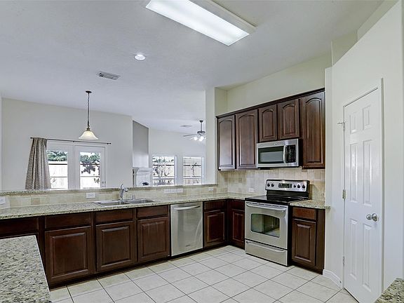 Charming light and bright one-story home on a large cul-de-sac lot features endless opportunities for a renters dream! Beautiful kitchen boasts lovely granite countertops, abundant counter and cabinet space, breakfast bar and nook, and walk-in pantry. Seamless movement from the kitchen into the cozy living area with a gas log fireplace creates an inviting ambiance. Formal dining, flex space, and home office / study with glass French door with a closet that can be used as a fourth bedroom. Master suite has a wall of windows with enough room for a sitting area, dual sinks, whirlpool tub with separate shower, vanity area and his and her closest. Two sizable secondary bedrooms are split from the master offering maximum privacy. Backyard has ample room for children to run and play and great for entertaining guests. Neutral paint pallet, wood floors and so much more! You dont want to miss this gem. Move-in ready! No pets allowed.