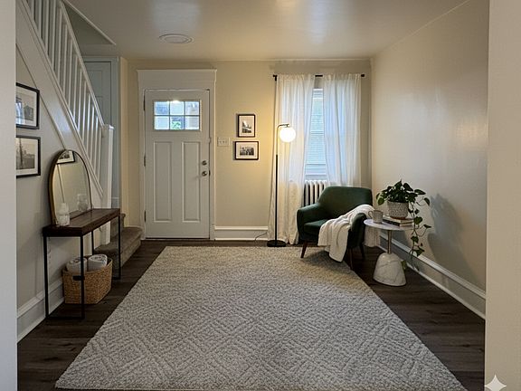 This home in Upper Darby, PA, offers a blend of modern updates and classic charm. Spread across two floors, the property features three bedrooms and one bathroom, making efficient use of its compact layout. The ground floor welcomes visitors with an entryway showcasing gleaming floors and a white-painted staircase leading to the upper level.