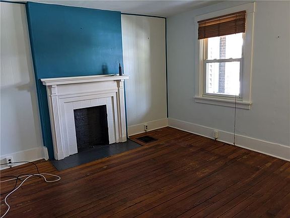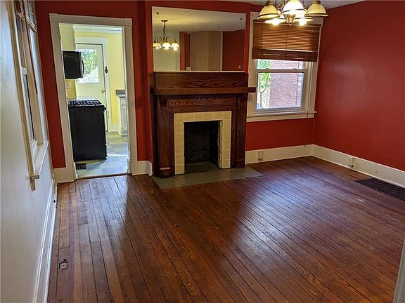 This end unit row house is ready to welcome you in. Step in from your own private porch into the living room. Relax in the dining room with the original unpainted hearth. The recently updated kitchen has eco-friendly Marmoleum tile, a dishwasher, and built in microwave! Upstairs, the master bedroom overlooks the street with big bright windows and twin closets. The second bedroom has a large closet and charming exposed brick accents. Large linen closet next to the bathroom and additional storage in the bathroom!