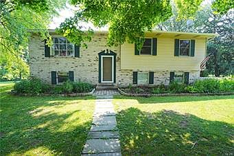 Classic style bilevel on beautiful 1 acre lot in quiet cul de sac. Large windows let natural light flood into living and dining rooms. Bright eat-in kitchen has solid wood cabinetry, and pantry closet with plenty of storage. 3 nice size bedrooms on main floor, and main bath offers access to master bedroom. Lower level features spacious family room with beautiful laminate wood floor, a 4th bedroom or den/office, laundry room, and 1/2 bath. Walk out from the family room to the large wood deck, paved fire pit area, and enjoy peace and privacy by the Koi pond. Efficient HVAC, and wood stove in family room for supplemental heating. 2 car garage and large shed. Lovely walkable neighborhood with convenient access to local amenities and activities for outdoor enthusiasts. Zoning allows for chickens!