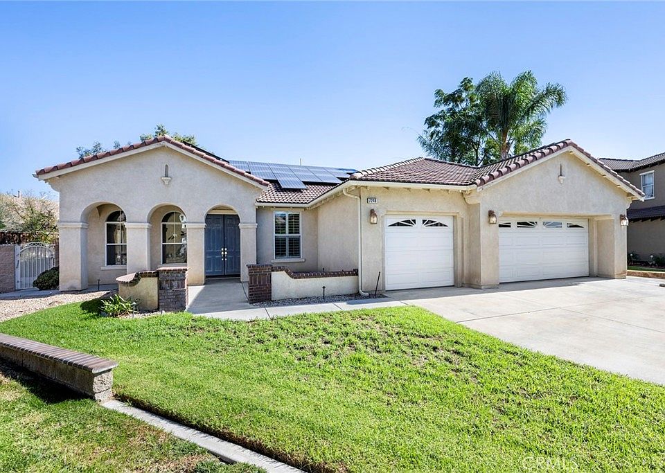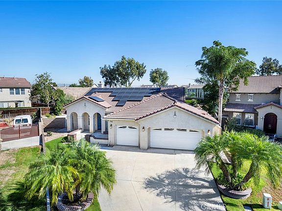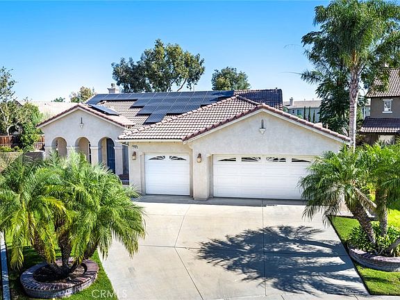 This is the one that checks all the boxes. Single level, cul de sac, pool all on 9500+ square foot lot. This combination is so rare that only 5 come on the market in an average year in the entire city of Eastvale. The pool is a top of the line salt water, pebble tech pool. Designed as a smart/sport pool it is 3 ½ at both ends and 4 ½ in the middle. Comes with reef step and 6 umbrella sleeves. Home has newer (2019) 25 panel solar system to lower utility bills. Solar is fully paid for. Upgraded Honeywell thermos stat is wi fi and operates in three separate zones. Floor plan flows perfectly. Builder option office right off entry with additional 2 bedrooms off hall and large master at back of the house. Open concept kitchen and family room perfect for entertaining. Newer dishwasher and microwave round out a fully functional kitchen. Home has been lightly used (Fireplace has never been used) and in mint working condition. Low maintenance pie shaped lot can have many options for use. The ideal home for those that like to entertain and ready in time for the holidays.