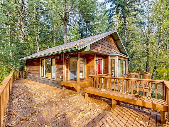 Embrace the magic of mountain living just in time for the holidays! Located in the popular Zig Zag Village community, this charming cabin is nestled amid forested tranquility, with access to hiking trails, the scenic Sandy River, a seasonal pool, and tennis courts. With captivating views of Zig Zag Mountain and seasonal glimpses of Mt. Hood, this cabin combines cozy "tree house" vibes with modern comforts. The upper floor features an open-concept living, dining, and kitchen area with large windows that immerse you in forest views. Perfect for hosting friends and family, the space invites you to cozy up by the gas stove or gather around the kitchen bar, sharing stories of the day’s adventures. Step out onto the spacious deck to relax with mountain and forested scenery. Also on the upper level are the primary bedroom and an updated bath. The main level offers a warm family room with a second gas stove, two additional bedrooms, an updated bath, and a convenient laundry area. With hardwood floors throughout and all-natural cedar siding, this cabin exudes a cozy mountain character with thoughtful, modern updates. A durable metal roof, two propane stoves, and a new generator ensure you’re ready for winter’s best. The lower basement is ideal for storing all your adventure gear, from snowboards to kayaks. Just 15 minutes from Government Camp and a quick 20-30 minute drive to three renowned ski resorts, this is the ultimate spot to make Mt. Hood your personal playground for year-round outdoor fun!