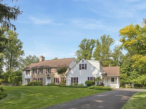 Welcome to this enchanting stone and clapboard style colonial residence, gracefully situated on over three lush acres. This home features an open first floor layout with many options for entertaining and a comfortable lifestyle. As you enter, you'll be greeted by a light-filled entrance hall with a circular staircase, flanked by a cozy Den with a fireplace and beamed ceiling and a stately Library/Office with a wall of bookshelves. An all-glass breezeway with a flagstone floor seamlessly connects the indoor and outdoor spaces, as well as leads to a step-down living room, adorned with a second fireplace and French doors to the outside patio and pool area. The formal dining room and country kitchen, which flows into the family room, offer ample space for entertaining and everyday living. The family room is bathed in natural light with its all-glass view of the expansive yard. It boasts a fireplace, vaulted ceiling, a wet bar and random width floors. Convenient first floor laundry room connects from the kitchen. Beyond it is a well thought out full bathroom for guests and family members to use while enjoying the inviting in-ground pool and private grounds. On the second floor, you'll find four spacious bedrooms, one, ensuite with a power room and an additional hall bathroom. The primary suite includes a bay of closets, a primary bathroom with a separate tub and shower, and a charming small balcony overlooking the yard. An additional bedroom and bath, accessible from the kitchen area, provide versatile accommodation options. Completing this exceptional property is a two-car attached garage, ensuring convenience and functionality. Conveniently located near the charming town of Ambler which offers a train line to the City, as well as excellent restaurants and a movie theater. Walking distance to the Wissahickon Creek and local schools. Only minutes from the PA Turnpike. Experience the perfect blend of elegance and comfort in this stunning home in a serene private setting.