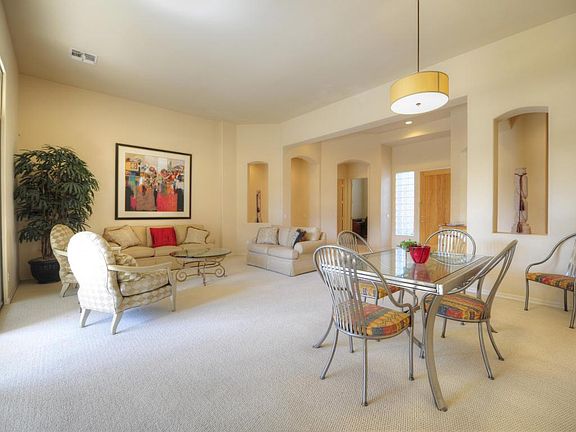 Location! Location! Location! Here's the floorplan you have been waiting for, in the prestigious gated community of Sterling Place. Grand entry with soaring ceilings and massive glass arcadia doors welcome you home to this 3 bed 2.5 bath + den, single level executive home. Open kitchen to great-room with Corian counters, newly refinished cabinets and brand new stainless appliances, are all included. Private lot with only 1 neighboring home is situated next to the resort community pool & spa. Separate exits to the gorgeous covered patio & lush, low maintenance backyard are accessible from not only the family room but also great-room & master. Master is spacious and features dual vanities, new glass shower enclosure and to die for walk in closet! Shopping, Dining, Entertainment & 101 access!