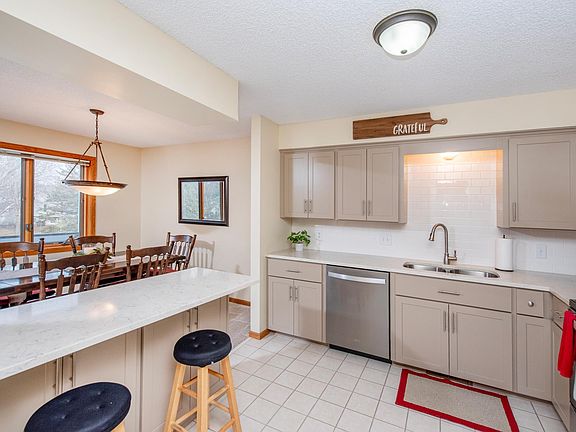 Welcome to 7247 Hunters Run in beautiful Eden Prairie. This condo/manor home has been lovingly cared for by the current owner. The beautiful kitchen was updated in 2020 with quartz countertops, subway tile backsplash, stainless steel appliances, and refaced kitchen cabinets. The carpet was also replaced in 2020. A new a/c unit was installed in 2019. The large primary suite includes a private bathroom and walk-in closet. There is a second spacious bedroom in this home. This second-floor unit includes a lovely living room with a wood-burning fireplace. Dedicated garage space is identified with the address numbers located over the garage. A lovely deck features views of the backyard with mature trees. Enjoy over 1100 square feet of Eden Prairie living for under $250,000. Close to parks, shopping, restaurants, Eden Prairie High School, biking and walking paths.