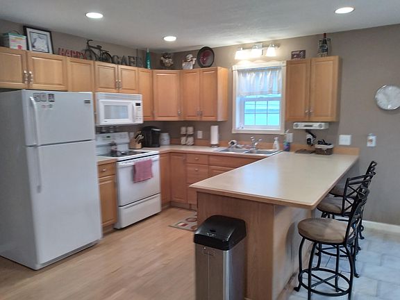 Nicely cared for 2BR 1 Bath home at an affordable price. This home is 2'x6' frame construction, well insulated, forced air propane heat, and on a 4' crawl space. The newer furnace is just over a year old and there is a 4'' well. The attached 2 car garage is plumbed for hot and cold water with a drain. The exterior is maintenance free vinyl siding. This home sits on a spacious lot that backs up to common land. Enjoy all the amenities Lakes of the North has to offer.