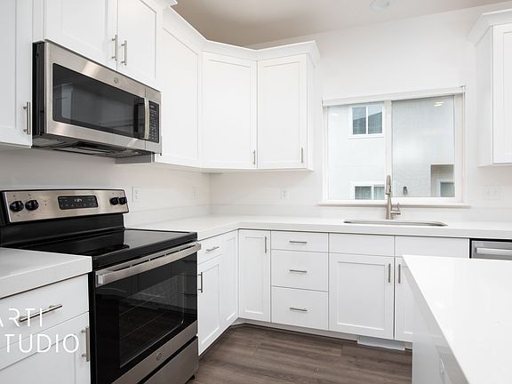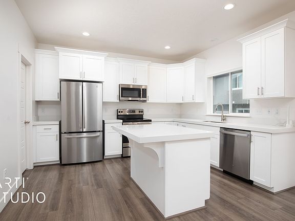 Eagle Mountain is where you want to be! Check out this practically new 2022 built 3-bed, 2 1/2 bath, 2 car garage in an outstanding neighborhood. This open floorplan has a great flow and feel and features an upgraded kitchen quartz counters with white cabinetry, HUGE pantry, and an included fridge! Laminate wood flooring throughout main level. Second level features the primary bedroom with private bathroom and two additional bedrooms. Forget about needing to get extra storage as you will have the entire unfinished basement to utilize. This home is conveniently located schools, a close neighborhood park, and tons of options for off road and hiking trails nearby! You also get access to a private community pool and clubhouse with gym! Landscaping to be updated in the early spring No smoking, no vaping, no pets. This home is available for immediate move in! Photos were taken in 2023 Tenant also pays all utilities. Fridge included. Washer, and Dryer not included. Zoned schools (subject to change): ES: Pony Express / MS: Vista Heights / HS: Westlake