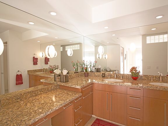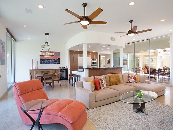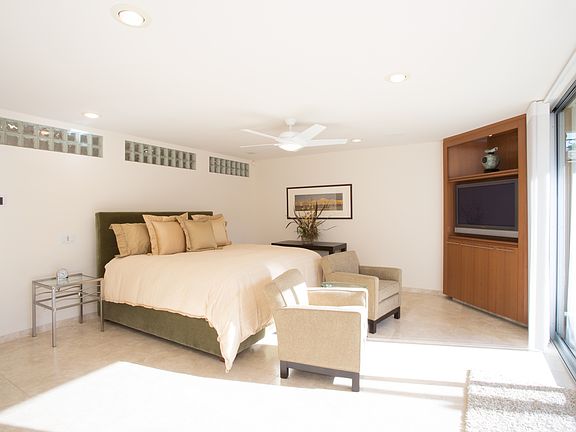This beautiful single-story 3-bedroom 3-bath condo is feels like a luxurious home, which provides complete privacy. It has been totally remodeled and with over 500 additional square feet have been added. (Over 2300 sq ft). It is turn-key with all the amenities you need, including a walk-in closet and 2 large private patios. The home has 3 King beds, one in each bedroom. We are located within the Sandpiper development (designed by the famous architect William Krisel), and very close to the the famous to El Paseo, which is lined with wonderful boutiques, restaurants, and art galleries. Right across the street are grocery stores, restaurants, Westfield Mall, coffee shops, and a nearby movie theater. Everything you need is nearby. This condo is very luxurious and unique in that it has been completely remodeled with top of the line appliances and beautiful granite, travertine, and the largest covered interior patio, atrium with views to the stars at night and large BBQ and eating table. Beautifully updated and furnished. An area you will live in while staying in the home. There is nothing else like it, in this great condition, directly off El Paseo. The condo itself is very private, but once you step outside the front patio, you are in a garden area, with colorful flowers, fruit trees, a ramada with a new outdoor BBQ and ice maker, and a mountain view pool that is heated year round. There is also a small, informal putting green. A truly wonderful are within the Sandpiper development. Seasonal Vacation Rental - Check Availability and seasonal rates at: www dot luxboxvacationrentals dot com and search for Sandpiper Mid Mod Escape Seasonal Vacation Rental - Check Availability and seasonal rates at: www dot luxboxvacationrentals dot com and search for Sandpiper Mid Mod Escape