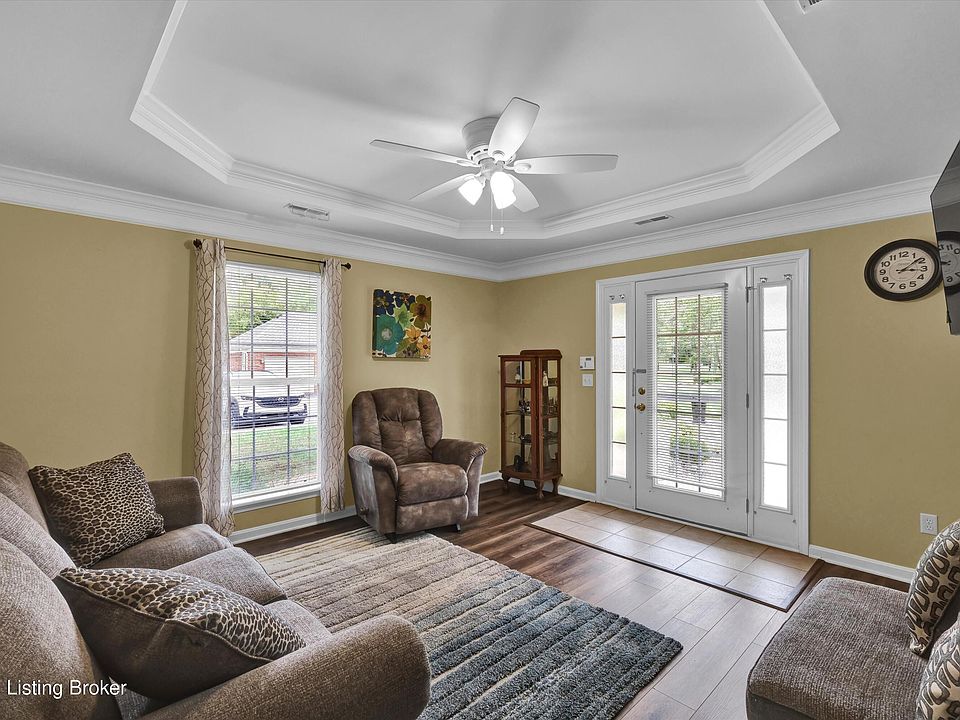 Welcome to 7248 Briscoe Vista Way, one of the few units in this patio home community that offers two full baths plus a garage. This two-bedroom, two-bath, one level home features a predominantly brick exterior, an open layout filled with natural light, and a sunroom off the kitchen that's perfect for morning coffee or reading. The rear patio is ideal for relaxing in the evenings while enjoying beautiful sunsets. Peace of mind comes with the many updates already completed, including a brand new HVAC system with transferable warranty (2021), new water heater (2021), all new appliances and LED kitchen lighting (2021), luxury vinyl flooring (2020-21), new thermostat (2021), washer and dryer combo (2024), full-house surge protector (2024), and new rear screen door (2024). The HOA covers water, sewer, trash, exterior maintenance, snow removal, master insurance policy, and common grounds for $305/month, making for a truly low-maintenance lifestyle. Additional storage in the attic adds convenience, while the location half a block from Highview Park and minutes from Gene Snyder, Bardstown Road, and the Outer Loop provides both walkability and quick access to the best of Louisville