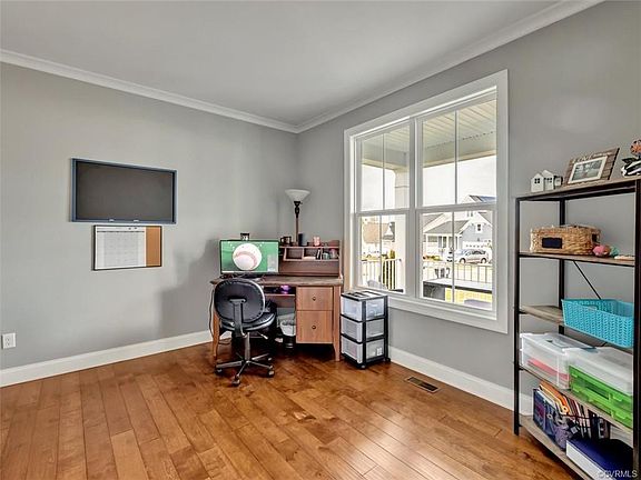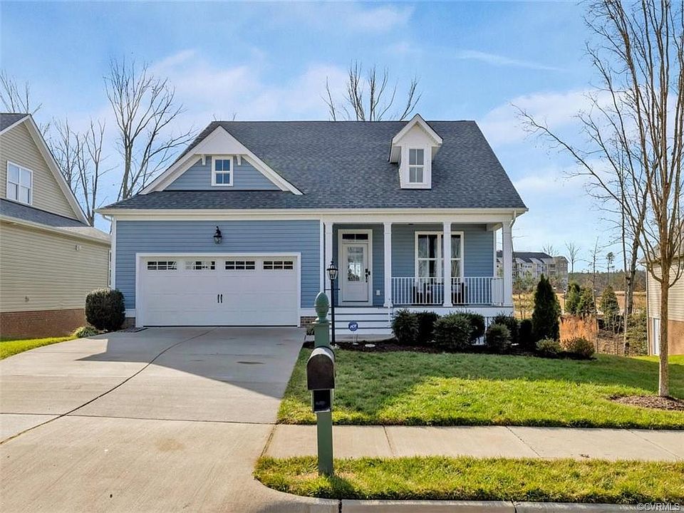 Welcome home to this LIKE NEW, cottage-style home in the maintenance-provided Charleston Village section of Magnolia Green! Crossing through the covered front porch you'll enter the wide entry hallway with an office/bonus room to your right and expansive open living/kitchen area ahead. The living area features vaulted ceilings and gas fireplace. The living area opens to the gallery kitchen, complete with bright cabinets, granite tops, SS appliances, gas cooking, and huge island. Bonus-the 2-car garage has direct entry to the hall by the kitchen! The dining area off the kitchen has a door to the balcony deck overlooking the backyard. The 1st floor primary suite is tucked privately in the back corner and the attached bathroom has a sizable double-vanity, walk-in closet, and tile shower. Upstairs you'll find a loft area that's large enough for another living space, which is right off of the 2nd bedroom w/ attached bath. You'll find tons more space in the finished basement, w/ a living space, full bath, and 2 more bedrooms. This space walks out to a nice patio. Don't miss all of the bonus storage throughout the home! Enjoy easy living in a happening neighborhood for a great price!