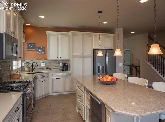 ***This incredible luxury-designed home situated directly across from Eagle Point Park in Banning Lewis Ranch has every imaginable upgrade to enjoy***Custom designer finishes...countertops, flooring, tile work, and more are found through the entire home. The gorgeous gourmet kitchen has a large quartz island / breakfast bar, gas double oven, wine fridge, and designer 42" cabinets***This home features 2 master suites on the main and upper levels w/ attached spacious baths***There is a main level office, formal dining room, large kitchen / living area, and a 15 x 7 laundry room***There is a spacious loft on the upper level w/ the 2nd master***The basement is finished w/ a built in wet bar, 5th bedroom/personal gym, large family room, and a large wine tasting room***The bathrooms, wet bar, and laundry room are all finished with granite surfaces***Plantation shutters and custom window treatments are throughout***Step out of your kitchen into your relaxing oasis in the backyard on to a 16 x 50 stamped concrete patio w/ a fire pit area or enjoy the sunsets sitting under the 10 x 14 pergola w/ a stone water feature***This house has too many features to list***Every detail has been well thought out***Don't miss this gem!!!