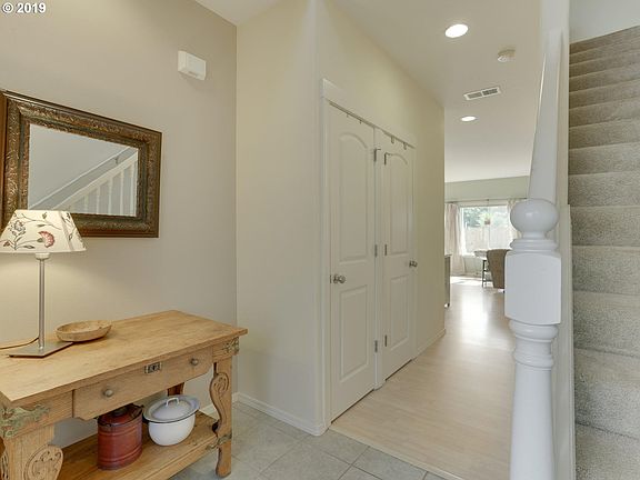 Light & bright townhouse in quiet neighborhood w/ quiet neighbors. Great first time home or investment property. Open kitchen/dining/living room w/ laminate floor, SS appliances, granite, gas range. Also on main, gas fireplace, 1/2 bath & slider to patio w/ privacy fence. All bedrooms upstairs. Master suite has WI closet & vaulted ceiling. Laundry on 2nd floor as well as two more bedrooms & full bath. Attached garage w/ extra storage. [Home Energy Score = 10. HES Report at https://rpt.greenbuildingregistry.com/hes/OR10165433]