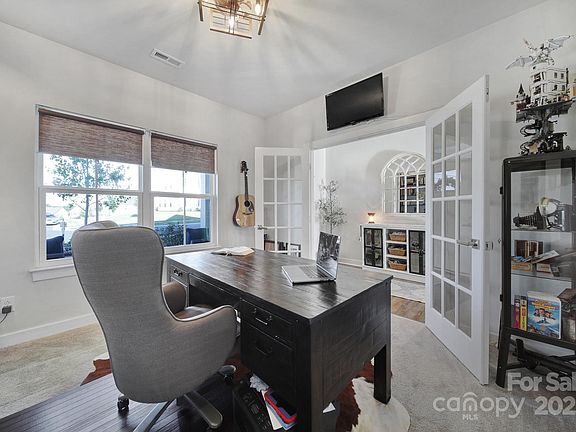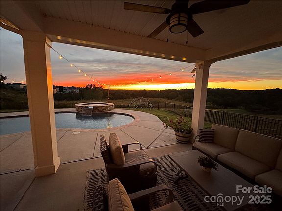 Welcome to The Mills at Rocky River in Concord! This meticulously maintained 4-bedroom, 3-bath home features a spacious open floor plan that seamlessly connects the office, living, dining and kitchen areas. The kitchen boasts stainless steel appliances, a subway tile backsplash and a large island. The office is enhanced with built-in shelving and a desk, while the guest room includes built-in shelving and a Murphy bed. The living room features a faux fireplace with an electric heater insert. The main level offers a bedroom and full bath, ideal for guests or multi-generational living. Upstairs, the primary suite has a walk-in closet and en-suite bath with dual vanity and a Roman Shower with dual heads and a built-in bench. Enjoy a backyard oasis with an in-ground pool, spa and underground drainage system. Permanent Trimlight Christmas lights adorn the exterior and raised flower beds enhance curb appeal. A Tesla charger is installed in the garage. Be sure to schedule your viewing today!