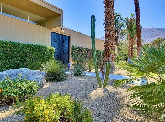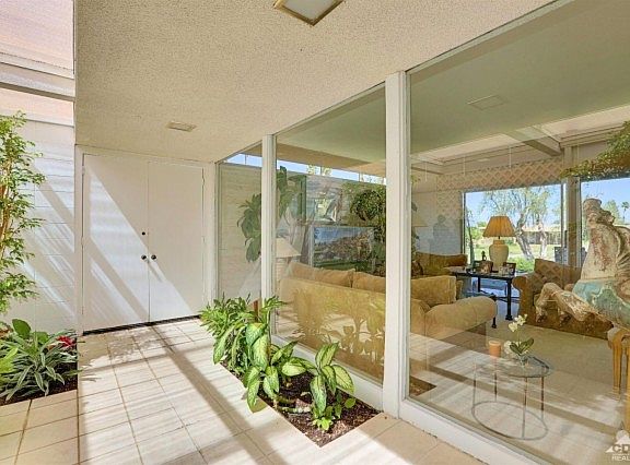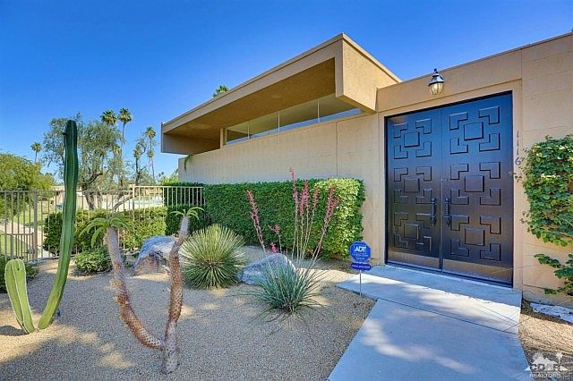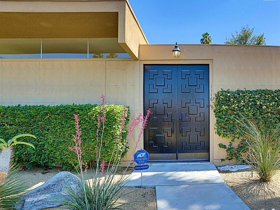 Welcome to Sandpiper Palm Desert...Sought after MID-CENTURY homes designed by world renowned architect, WILLIAM KRISEL. This home is located in one of the most desirable sections of the complex. Elevated lot with VIEW of greenbelt and newly refurbished pool. Bedrooms have WEST facing mountain VIEWS. Enter the home through an atrium. See why people covet the Mid-Century design. Clerestory windows in the living room/dining room which allow natural light into the space without compromising privacy. Kitchen and bathrooms have been updated. Most furnishings are negotiable. Home includes a detached 1 car garage (close to the condo) and seller installed an inside wall to separate the space from other vehicles. The photos tell it all...to SEE it is to WANT it. Sandpiper PD is located close to world class shopping on beautiful El Paseo, restaurants and the McCallum Theatre. Don't miss owning a piece of PD History.