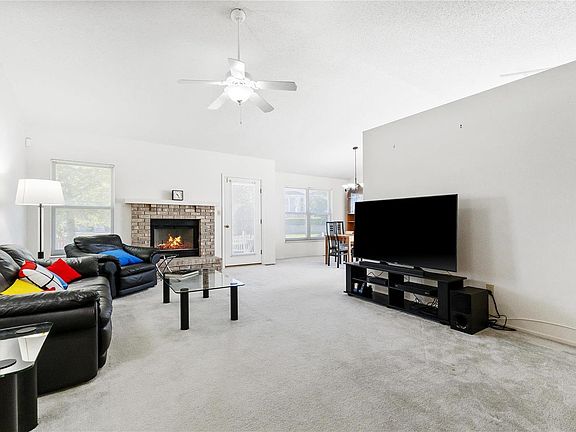 Welcome to this charming ranch-style home nestled on a level lot with large mature trees. Step inside to discover a vaulted family room featuring a cozy wood-burning fireplace. The spacious dining area, also vaulted, seamlessly connects to the eat-in kitchen, complete with a bright bay window, pantry and ample cabinet space. Retreat to the primary suite, boasting a dramatic vaulted ceiling, a generous walk-in closet, and a full bath equipped with double sinks, a large soaking tub, and a walk-in shower. Two additional bedrooms, a full bath & a laundry closet complete the main level. The lower level offers a blank canvas, complete with a roughed-in bath, ready for your personal touch to create additional living space. Additional highlights of this home include a newer furnace and AC for comfort year-round, a two-car garage for ample storage, durable vinyl siding, and an alarm system for peace of mind. Don’t miss your chance to make this delightful home your own!