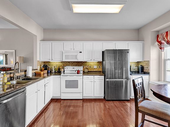 This beautiful 3 story townhome in great condition and ready to move into. This home offers plenty of space for a first level office or guest room with garage access and shelving that has been added for storage with a first floor utility room with washer and dryer and backyard area for grilling out. The second level has custom hardwood flooring with a large family room with an updated kitchen and a beautiful deck attached for some great relaxing. Also note that the refrigerator will be conveying with property. The upper level has a master suite with vaulted ceiling and triple windows, walk in closet and an en'-suite bathroom. The second and third bedrooms are of great size within close proximity of the hall bathroom.