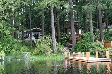 Spectacular Lake Alice Waterfront Bungalow completely remodeled and updated. Reclaimed materials used throughout. Covered lake view porch, Hardi Plank siding with lifetime paint, Composition roof, extensive insulation, Brand New Kitchen with slab granite countertops, solid cherry and vertical grain fir cabinetry, Original Fir floors, fully fenced w/ gated entrance,52' waterfront with dock, Heated Storage Building,Wood stove,New well equip,Over 1/3 acre of maintenance free natural landscaping.